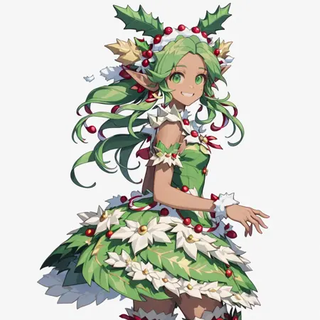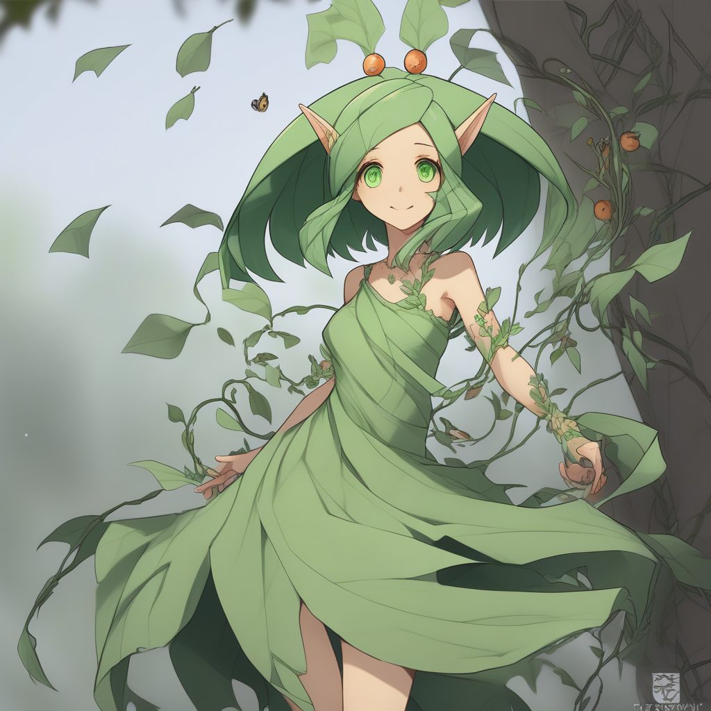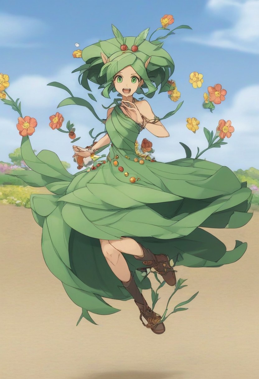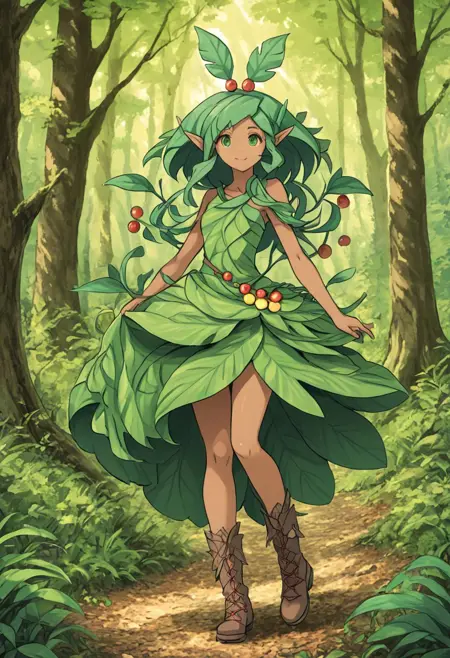 Normal (leaf dress) outfit: leaf dress, boots, hair ornament