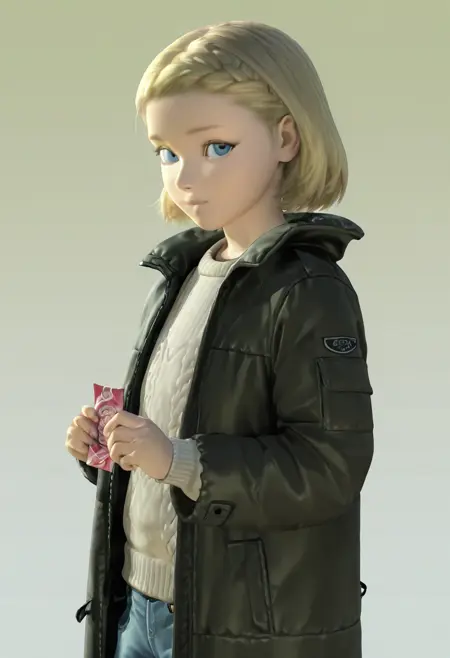 CannaHiggins, 1girl, solo, blonde, blue eyes, short hair,