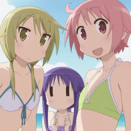 水着: 白色ビキニ、黒色スポーツビキニ、赤色ビキニショーツ、紫ビキニ、緑ビキニ、アクアビキニ、黒色ビキニ