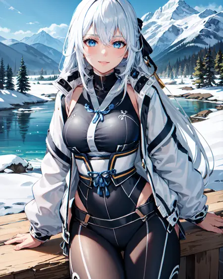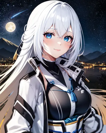 <lora:ShizunaKuro1:1>, Shizuna Rem Misurugi, 白发, 长发, 发带, 蓝眼, 中等胸围,