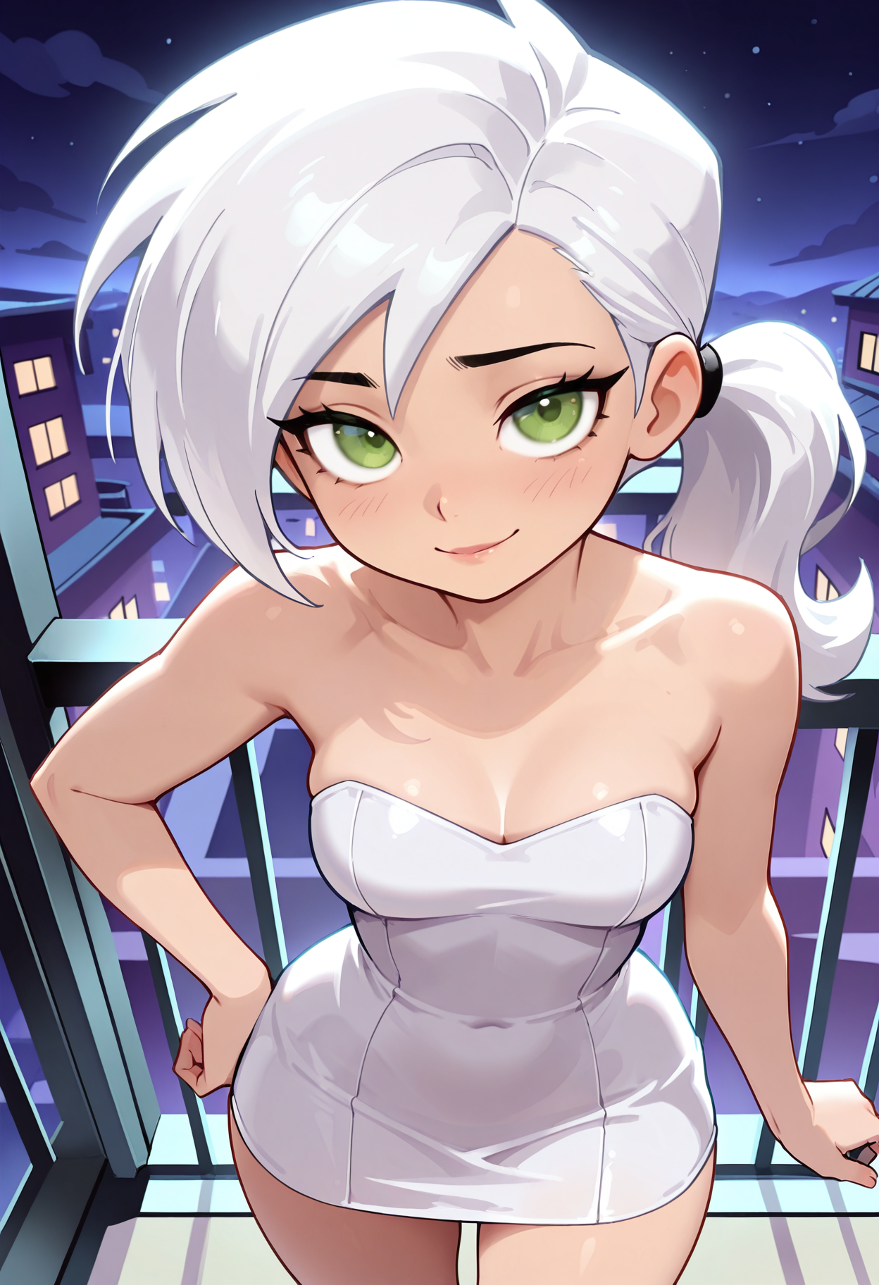 dani phantom, 苗条, 中等胸部, 有臀部, 马尾辫, 白发, 绿眼睛