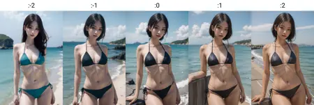 これは、キャラクターの肌色を重み付けで調整するLORAです。