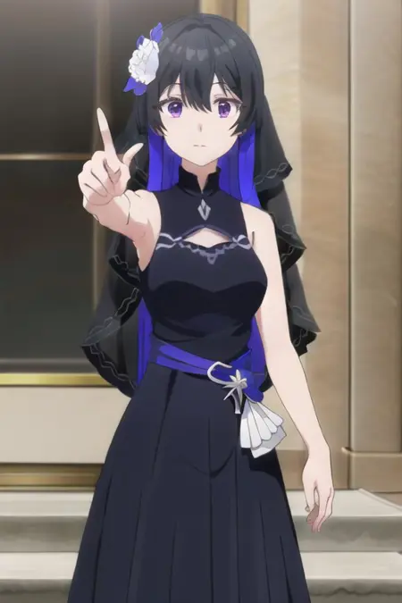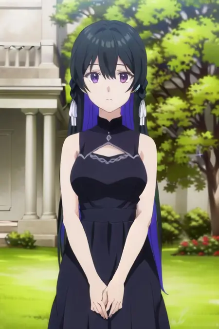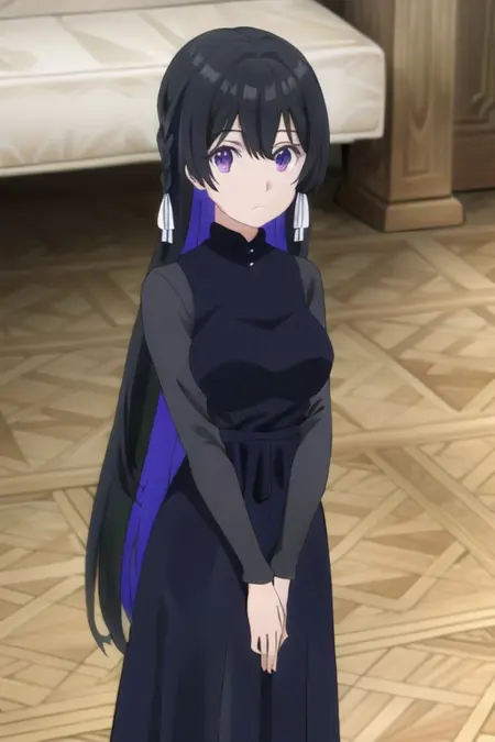 : tinasha、黒髪、長い髪、紫髪、色付きの内毛、紫の目