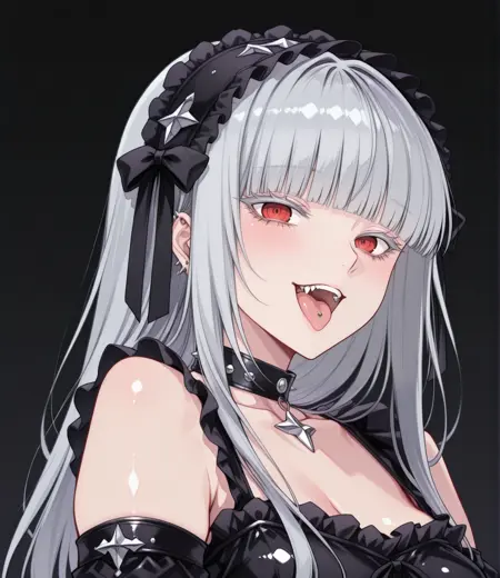 ihwa, grey hair, silver hair, red eyes, bangs,