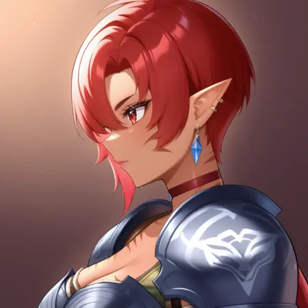 プロンプト例: fia,赤い目,赤い髪,短い髪,暗い肌の女性,タトゥー,鎧,肩甲板,赤いマント,緑の骨盤カーテン,犬の尻尾,すね当て,虎の縞,顔のタトゥー,尖った耳,