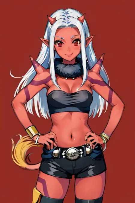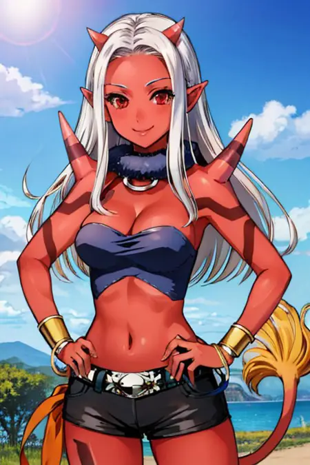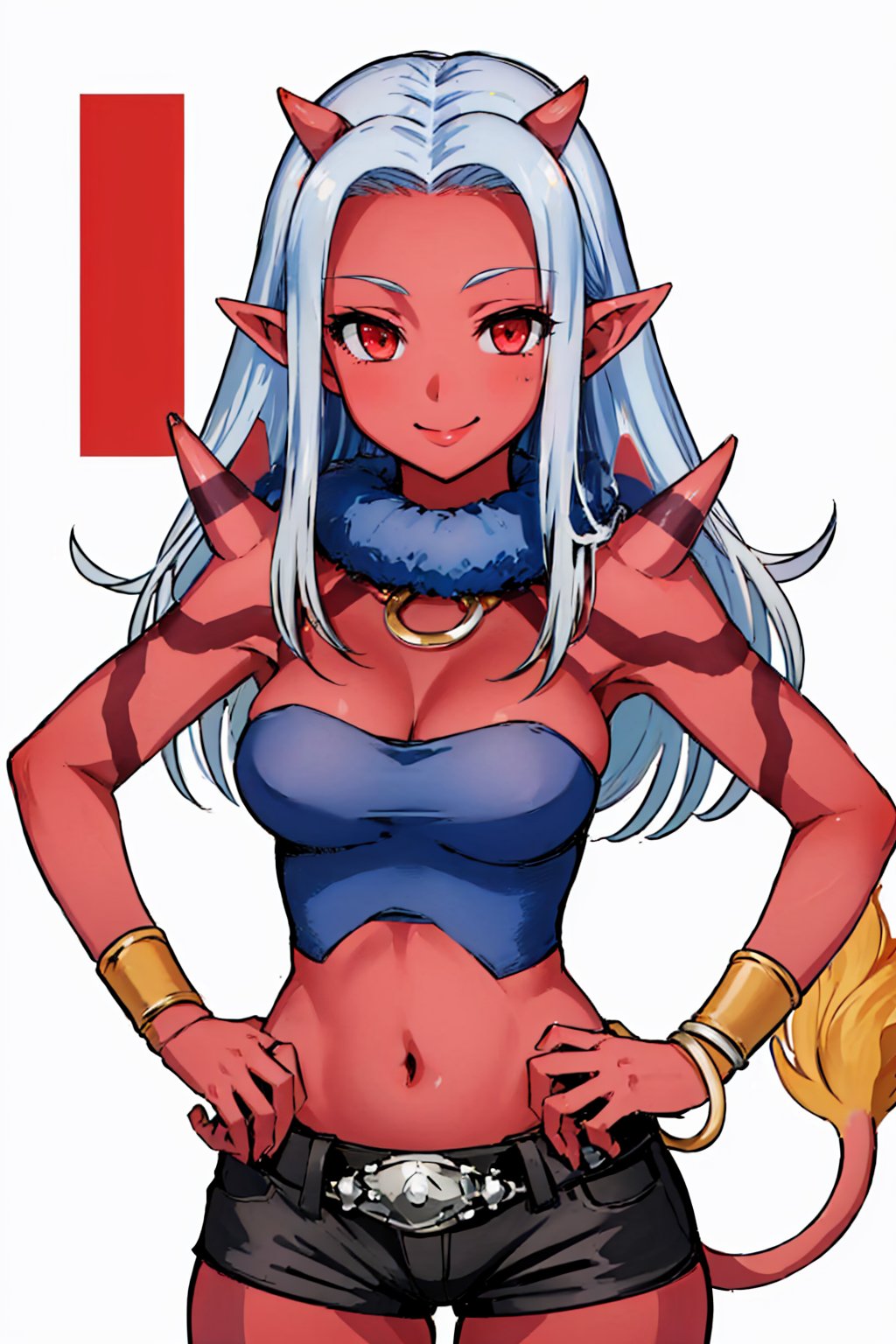트리거 + 외모: dq10ogre, 색상이 있는 피부, 빨간 피부, 보석, 돌기, 꼬리