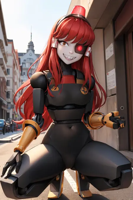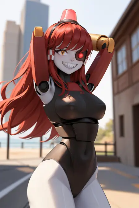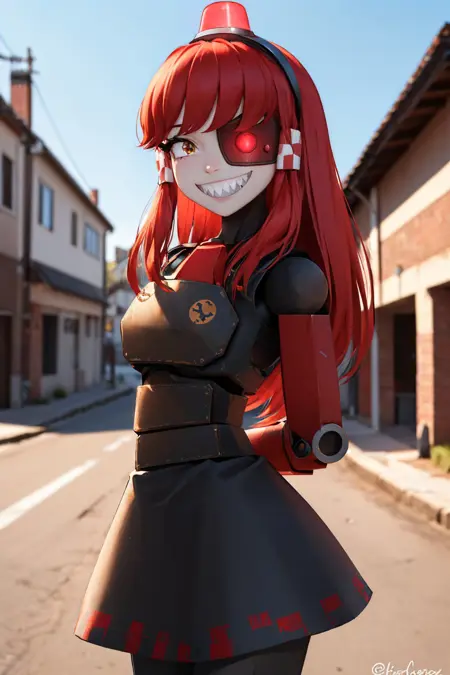 トリガー+外見: mimi-sentry, sharp teeth, eyepatch
