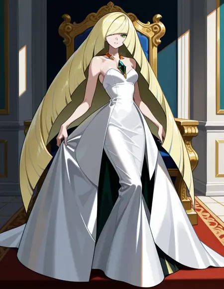 无肩带连衣裙,裸露手臂,蓬松外裙摆,闪亮丝绸,全身,橙色服装,项链
