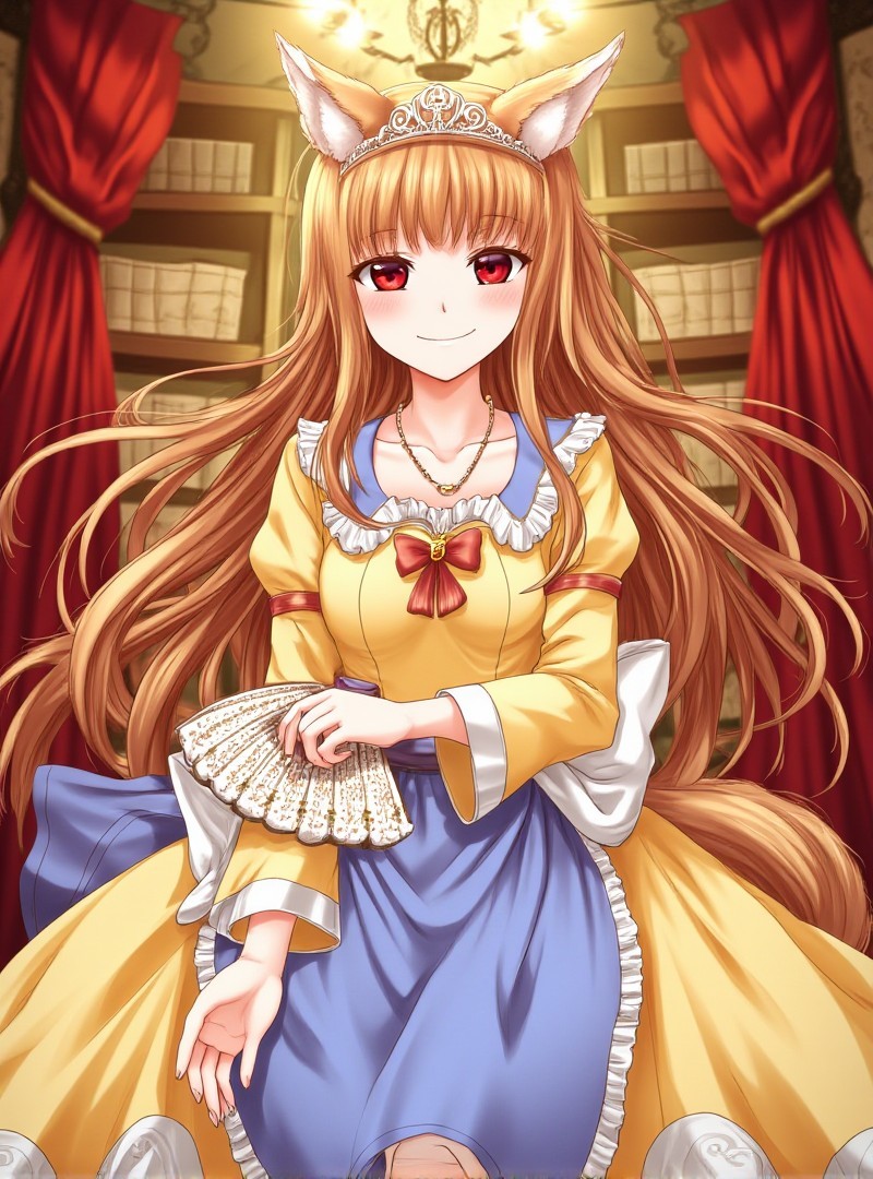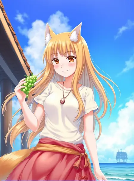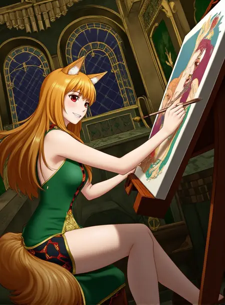 The trigger word is "Holo" You can specify that she has a wolf tail and wolf ears, but it's not mandatory.