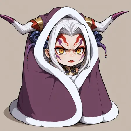 トリガー単語は「ffutmca」であり、「黄色い目、白い髪、角、長い髪、顔の模様、リップスティック」は必須です。