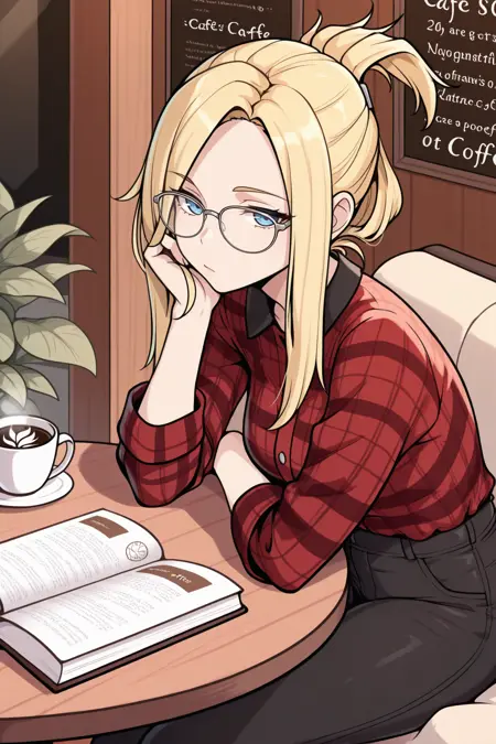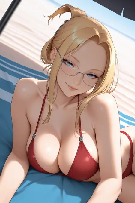 添加 "眼镜" 以呈现她戴眼镜的样子。