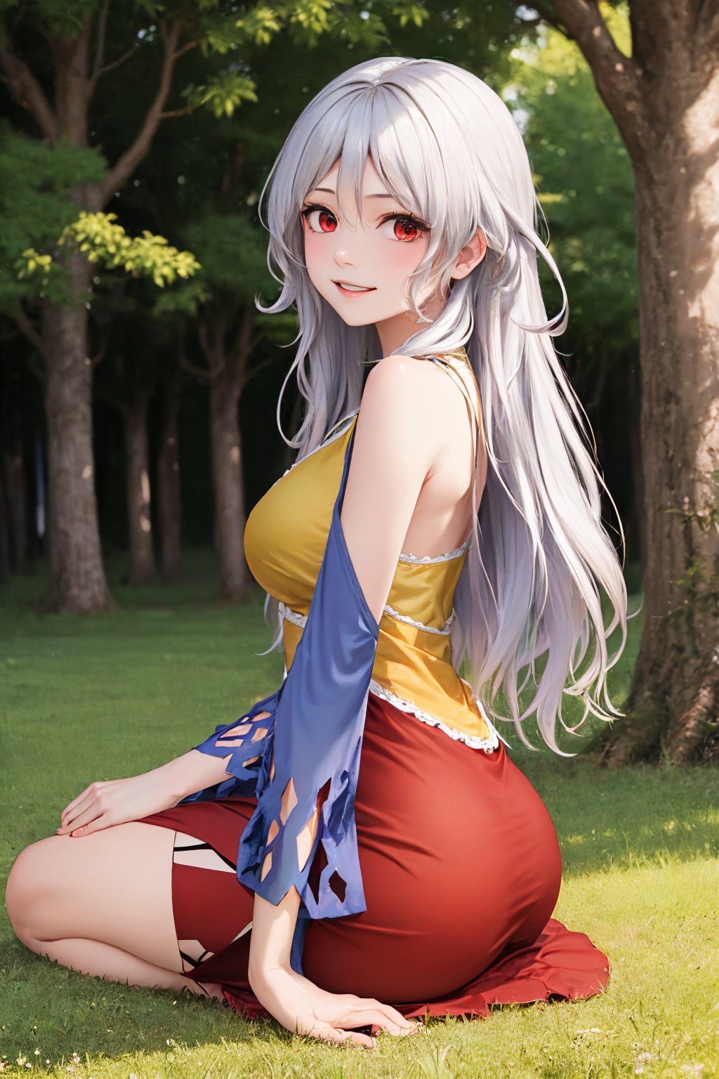 デフォルトの衣装: 多色のドレス、片肩ストラップ、取り外し可能な袖、肩出し