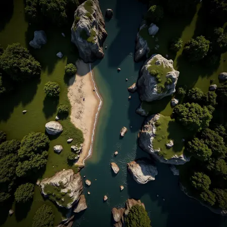 Start your prompt with OgMapTerrainPatch, top-view. I use Dreamshaper XL Lightning DPM++ SDE Karras, Steps 4, CFG 2, Clip -2, and Layer Diffuse (SDXL, Attention Injection) to generate 1024x1024 terrain patches.