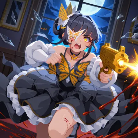 否定提示:画质差,最差画质,最差细节,普通画质,草图,审查,已审查,条状审查,多色主题,模糊,最差眼睛,坏眼睛,无表情,翅膀,蝴蝶翅膀, (短裙),解剖错误,超短裙,裙子,短裙,蝴蝶胸针,横分发,吊袜带,