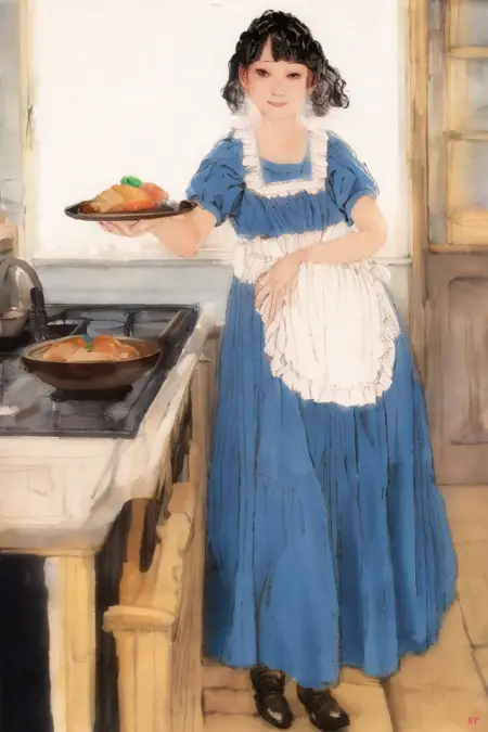 中国美術家協会の副会長である何家英教授は、中国の美女画で有名です。