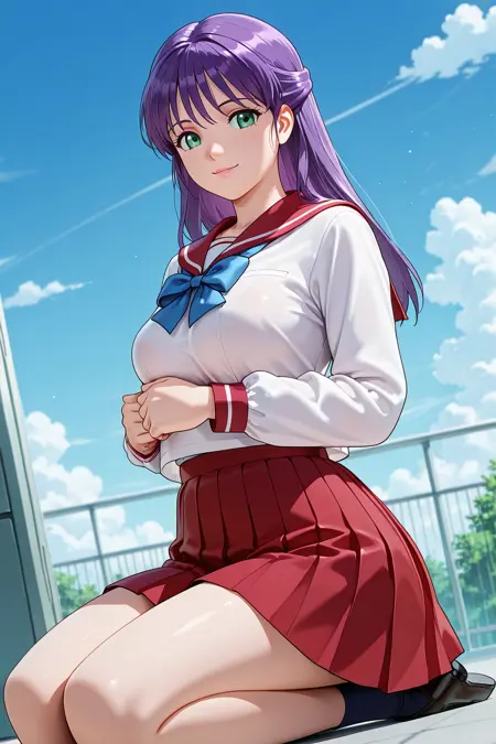 百褶裙,水手服,领结,水手领,红色裙子,蓝色蝴蝶结,
