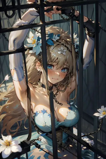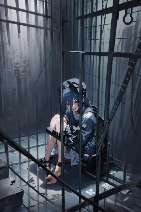 v1은 clearly 머리카락이 철제 울타리와 혼동되며, 얼굴 앞에서 울타리를 정상적으로 생성하기 어렵습니다.