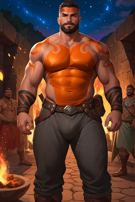 lora:dadbod:0.9 dadbod, male focus, 1boy, solo, pectorals, facial hair, belly
