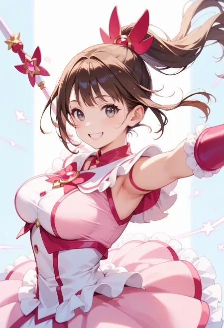 Magical girl outfits are relatively easy to generate with illustration-style base models. However, I created this LoRA to make them even cuter and more kawaii. I think it should work fine.