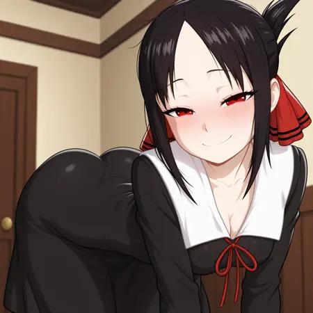 kaguya 수줍은 얼굴, 홍당무, 파동 모양 입/kaguya 유혹적인 얼굴, 홍당무, 유혹적인 미소 /