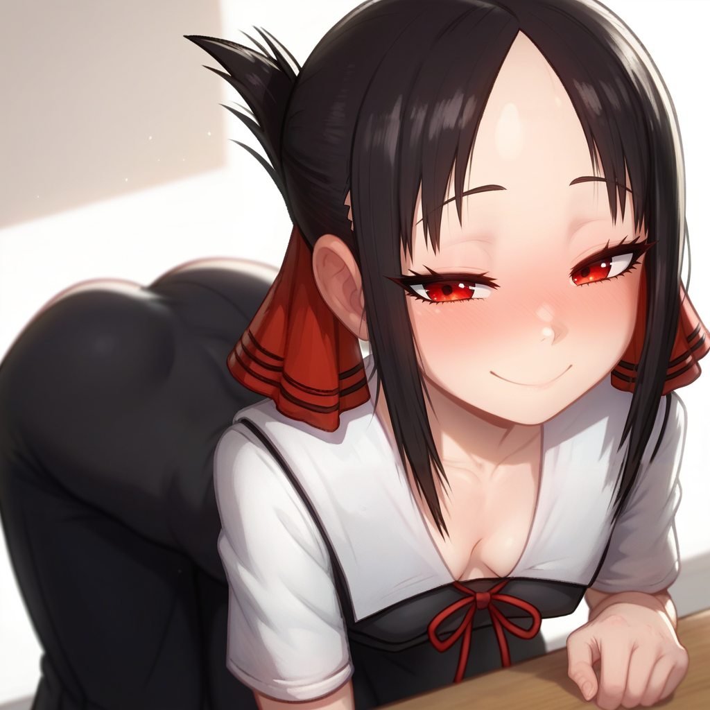 kaguya shy face, blush, wavy mouth/kaguya seductive face, blush, seductive smile /