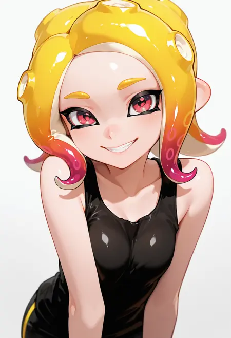 octoling, 1girl, solo, smile, golden hair, gradient hair, long hair, posing,