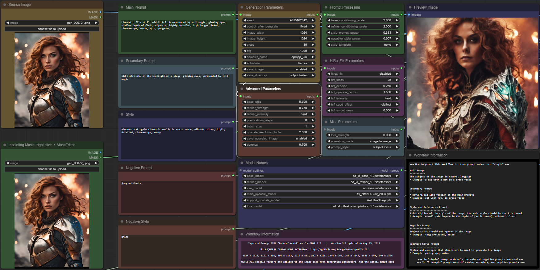 Searge-SDXL: EVOLVED v4.3.2 - Optimized Workflow for ComfyUI - 2023-11-13 - txt2img, img2img, inpaint, revision, controlnet, loras, FreeU v1 & v2, ...