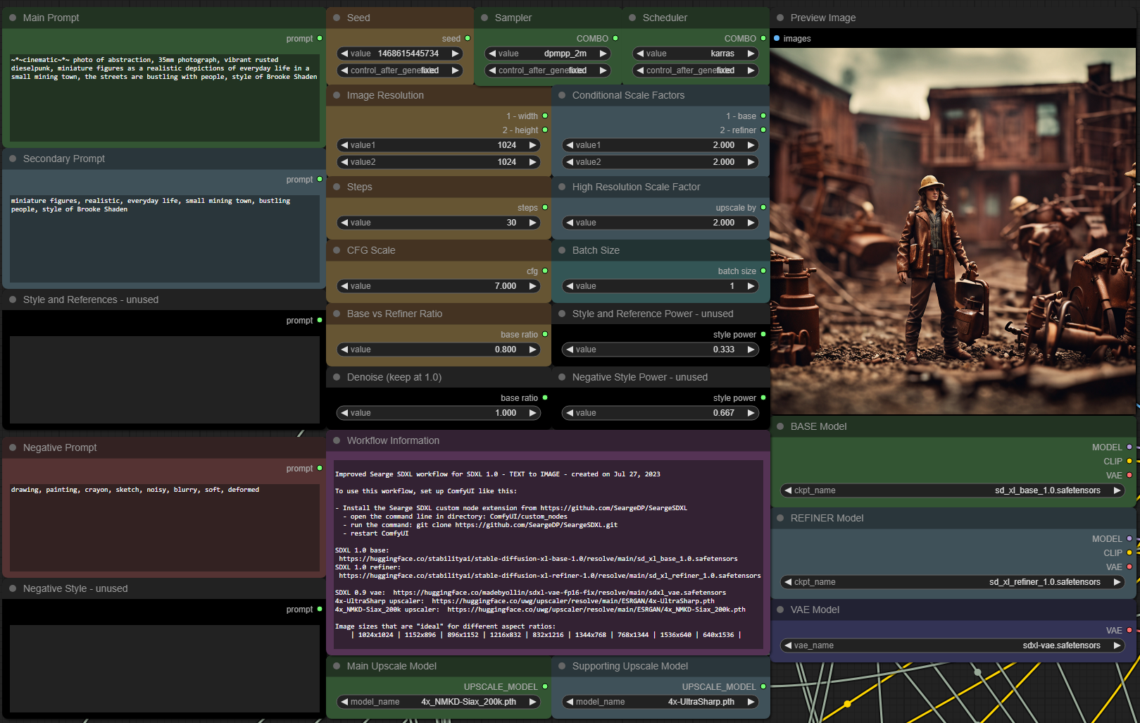 Some custom nodes for ComfyUI and an easy to use SDXL 1.0 workflow. A detailed description can be found on the project repository site, here: Github Link