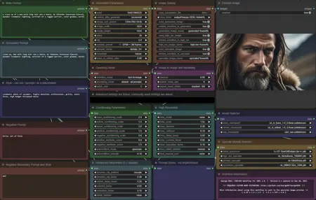 Searge-SDXL: EVOLVED v4.3.2 - Optimized Workflow for ComfyUI - 2023-11-13 - txt2img, img2img, inpaint, revision, controlnet, loras, FreeU v1 & v2, ...