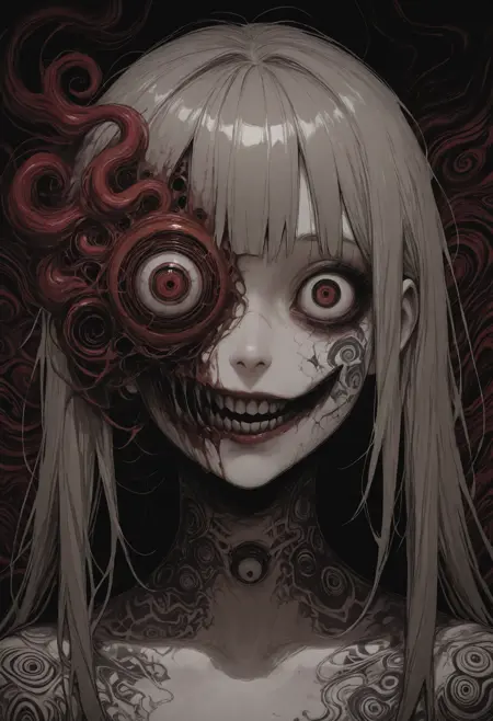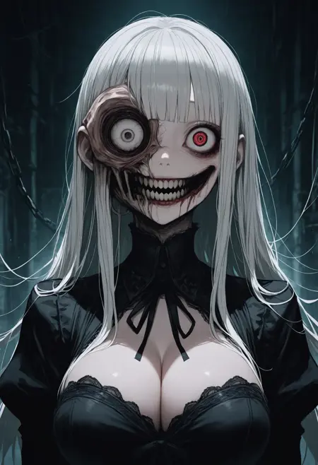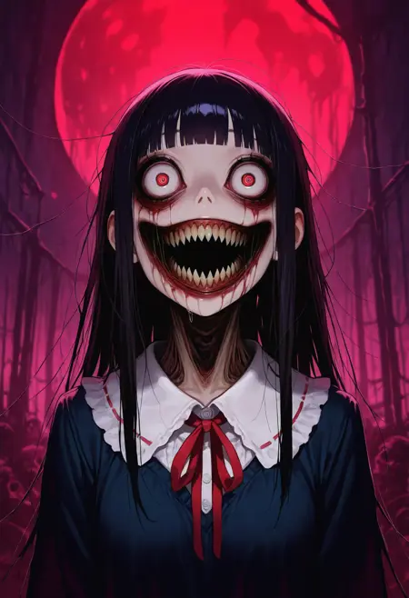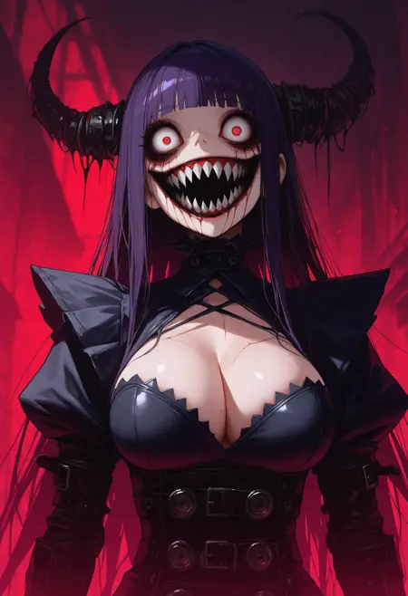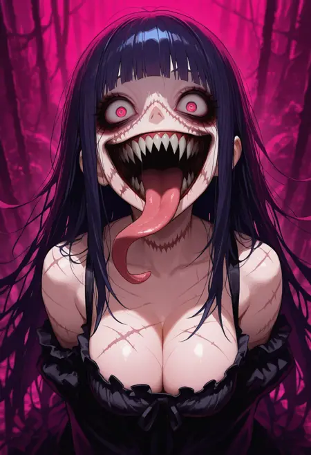 Trigger Word: h4rdcrash, creepy aesthetic, horror, tongue, teeth, sharp teeth