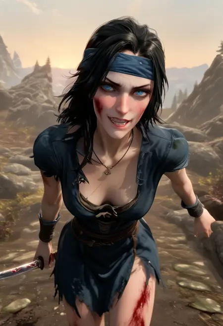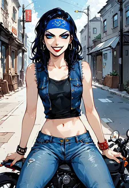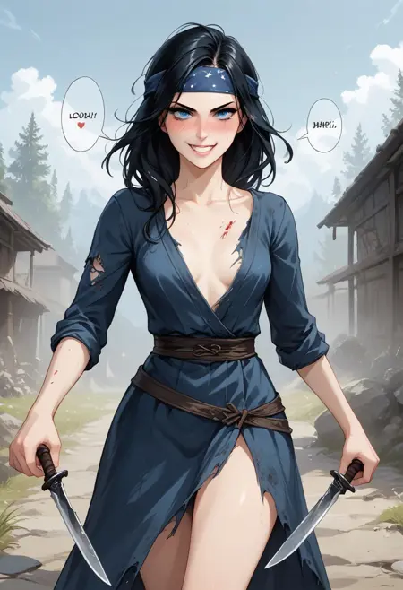 또한, 이 LoRA는 진짜 흐릿하고 거칠며 어수선한 스타일과 파랑, 회색 톤을 선호하는 경향이 있는데, 나는 이걸 좋아하지만 지루해질 수 있으니, 'sketch', 'bandana', 'evil', 'grin' 같은 키워드는 네거티브에 넣어 이 효과를 줄이는 걸 추천해.