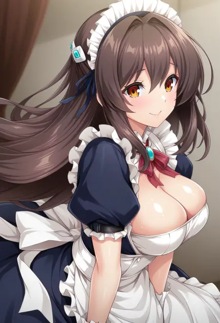 - marina, 메이드, 갈색 머리, 갈색 눈