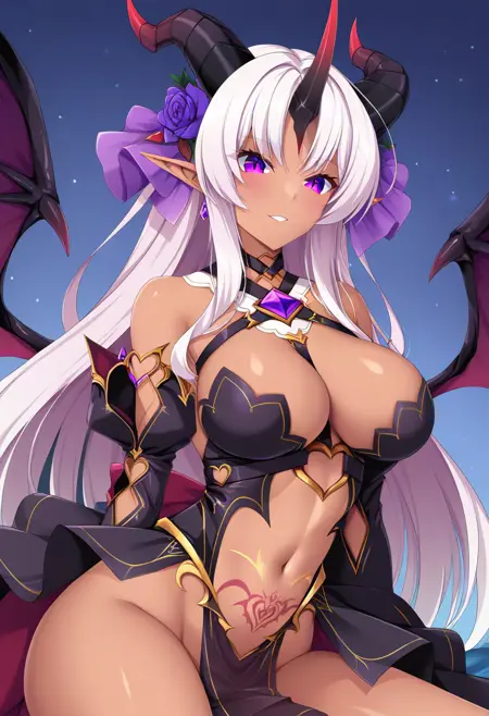 - luxutia, Luxutia服装,深色皮肤女性,白发,紫色眼睛