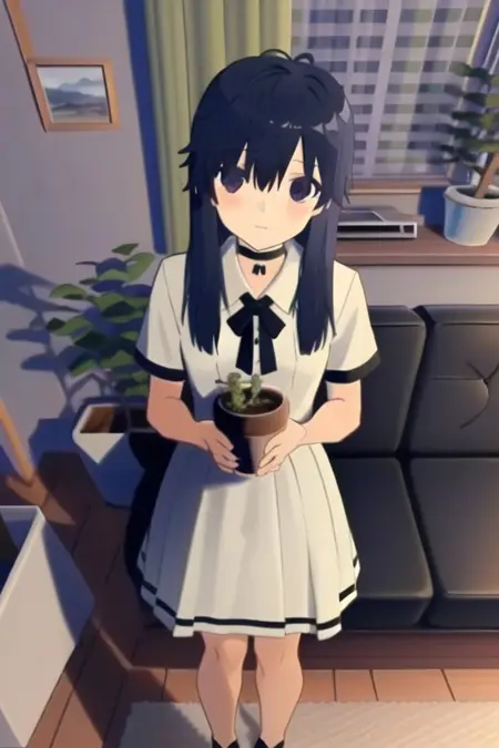 : creepy mita, 긴 머리, 보라색 파란 머리, 검은 눈
