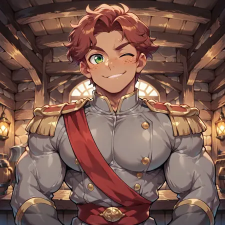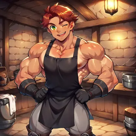 Pony로 만든 32장의 이미지로 학습되었습니다. 2가지 캐노니컬 복장이 포함되어 있습니다.(트리거 단어: 군인 복장, 대장간 앞치마). LoRA 강도는 1.0을 권장합니다.