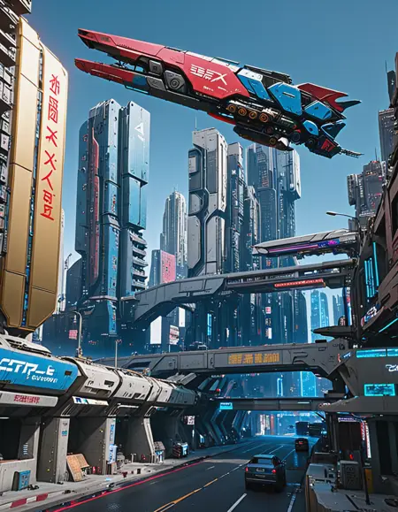 realistic photo of citybkg, cyberpunk, ambiance, day, clouds, airship, very detailed, design buildings, mega structures, futuristic, ground view, high buildings, city lights, airship closeup, billboards on buildings, street, signs, shops, kanji, bridges, shop signs, illuminated, elevated highway, people, traffic, buses, lora:City\_Worlds:0.9