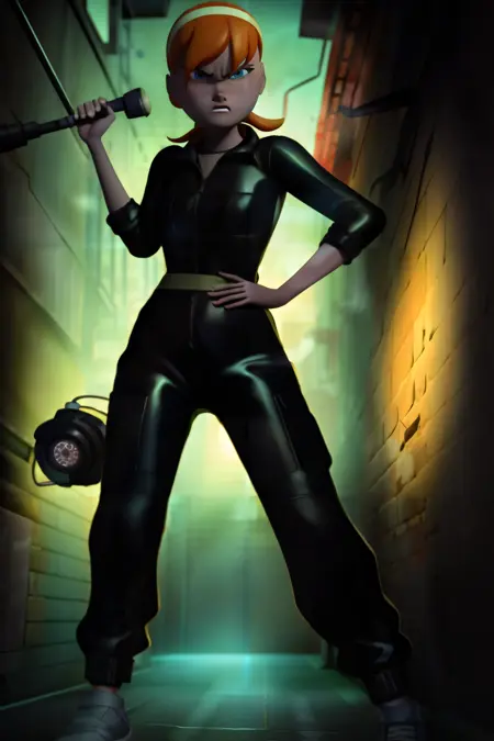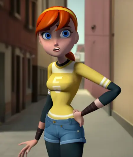 'april2012' 是提示词。你可能希望输入 "黄色上衣"、"牛仔短裤" 和 "黑色连裤袜",因为训练中还包括其他服装(黄色连体衣、黑色连体衣)。