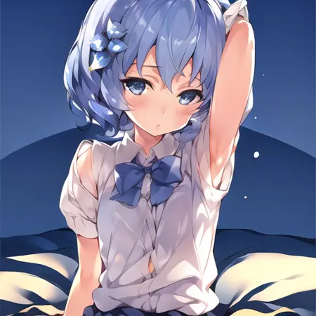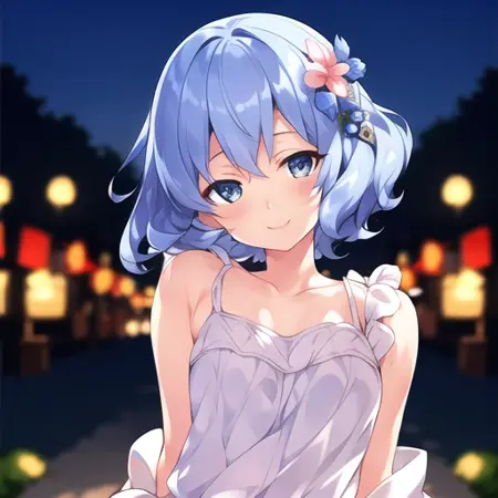 The number of samples is relatively small, resulting in moderate restoration quality, with many parts of the hands and poses requiring post-processing adjustments via manual PS. Additionally, feature trigger words (short hair, blue hair, blue eyes, blue hair ornament) need to be input to assist in feature localization.