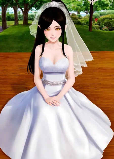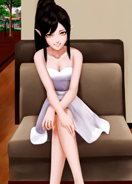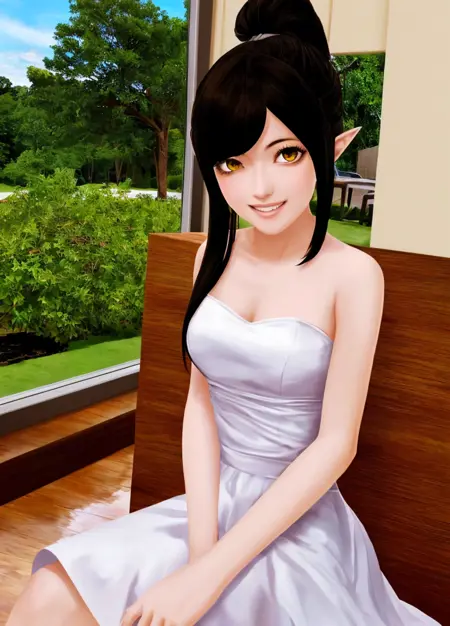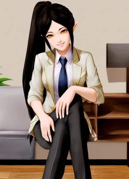 주본문 프롬프트: Harem_Hotel_Lin, 1girl, solo, long hair, black hair, medium breasts, yellow eyes, ponytail, pointy ears,