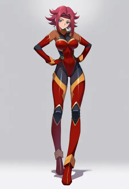 비행복 프롬프트: flipped hair, headband, pilot suit, red bodysuit, bodysuit