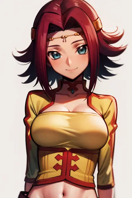 基本プロンプト:1girl, kouzuki kallen, red hair, short hair, blue eyes