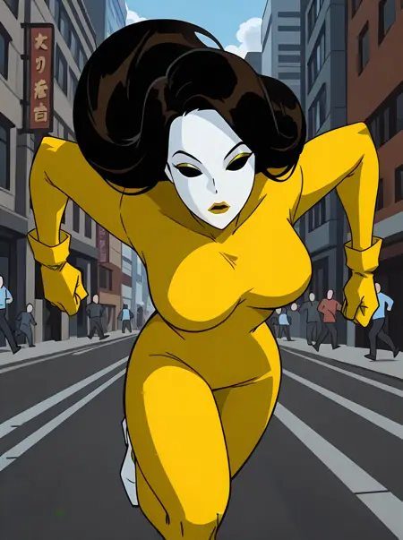 LoRA 학습 과정에서 저는 그녀가 에피소드에서 보여진 네 가지(녹색, 노랑, 주황, 검정) 색상이 아닌 거의 모든 색상의 바디수트를 입은 상태로 생성할 수 있도록 설정했습니다. 항상 "흰 마스크"를 프롬프트로 사용하지만, 바디수트, 장갑, 입술의 색상은 원하는 색으로 바꾸기만 하면 됩니다.