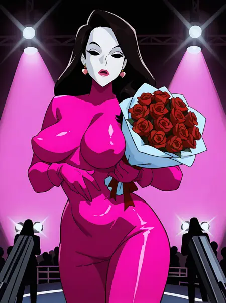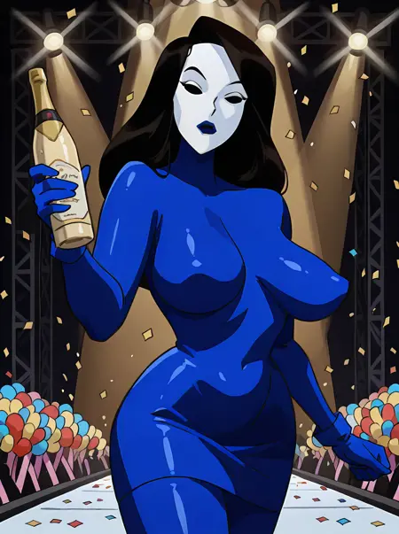エピソードでは、バットマンとバットガールがバットコンピュータで、ペイジがファッションモデル時代の古い写真や映像を閲覧する場面がある。それらの衣装もLoRAに含めているが、これら(オリーブ色のドレスを除く)はほとんどが1枚の画像からトレーニングされているため、生成結果はまちまちである可能性がある: