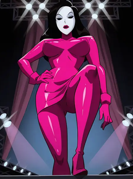 저는 이 에피소드의 그녀 디자인이 매우 마음에 듭니다. 단순함 속의 아름다움이죠. 이 에피소드 이후 다시 등장하지 못한 것이 아쉬울 뿐입니다. 그녀는 단일 색상의 바디수트와 흰색 마스크를 착용합니다. 에피소드 동안 그녀는 네 가지 다른 색상의 바디수트를 입는데(연중 사계절 각각에 대응), 마스크의 립스틱 색깔도 항상 바디수트 색과 일치합니다.