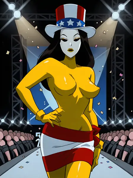 LoRAのトレーニングでは、エピソードに登場した4色(緑、黄、オレンジ、黒)だけでなく、ほぼ任意の色のボディスーツを着用した彼女を生成できるようにしました。常に「白いマスク」とプロンプトに入力しますが、ボディスーツ・グローブ・リップの色は「グリーン」を他の色に置き換えるだけで対応可能です。