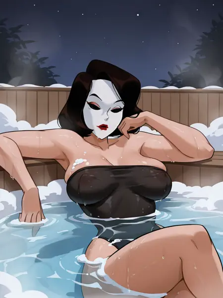 私はこのエピソードでの彼女のデザインが大好きだ。簡潔さの中に美しさがある。このエピソード以降、彼女が再登場しなかったのは残念である。彼女は単色のボディスーツと白いマスクを着用している。エピソード中には、一年の四季(春・夏・秋・冬)に合わせて4つの異なる色のボディスーツを着ており、マスクの口紅の色は常にボディスーツの色と一致している。