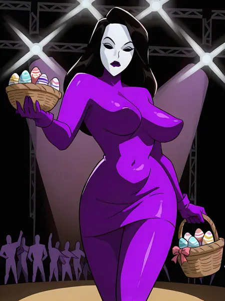 에피소드에서는 배트맨과 배트걸이 밤컴퓨터에서 패이지의 모델 시절 사진과 영상을 보는 장면이 나옵니다. 이러한 옷차림도 LoRA에 포함되어 있지만, 대부분의 옷(올리브 드레스 제외)은 단일 이미지로 학습되었기 때문에 결과는 다를 수 있습니다: