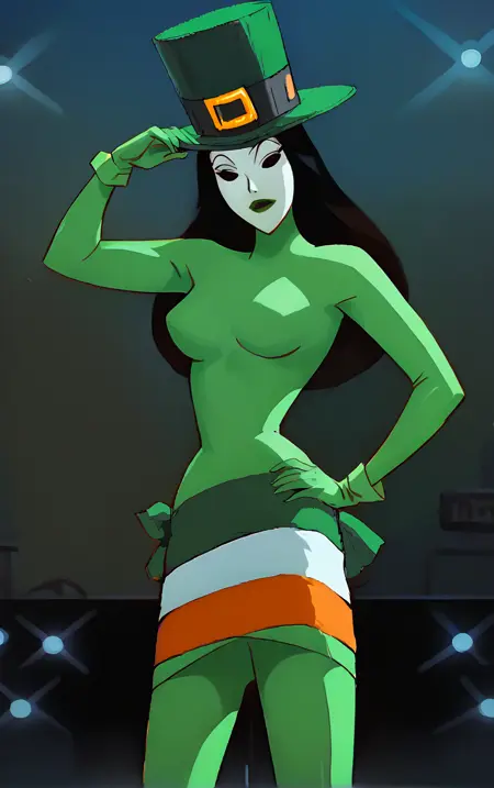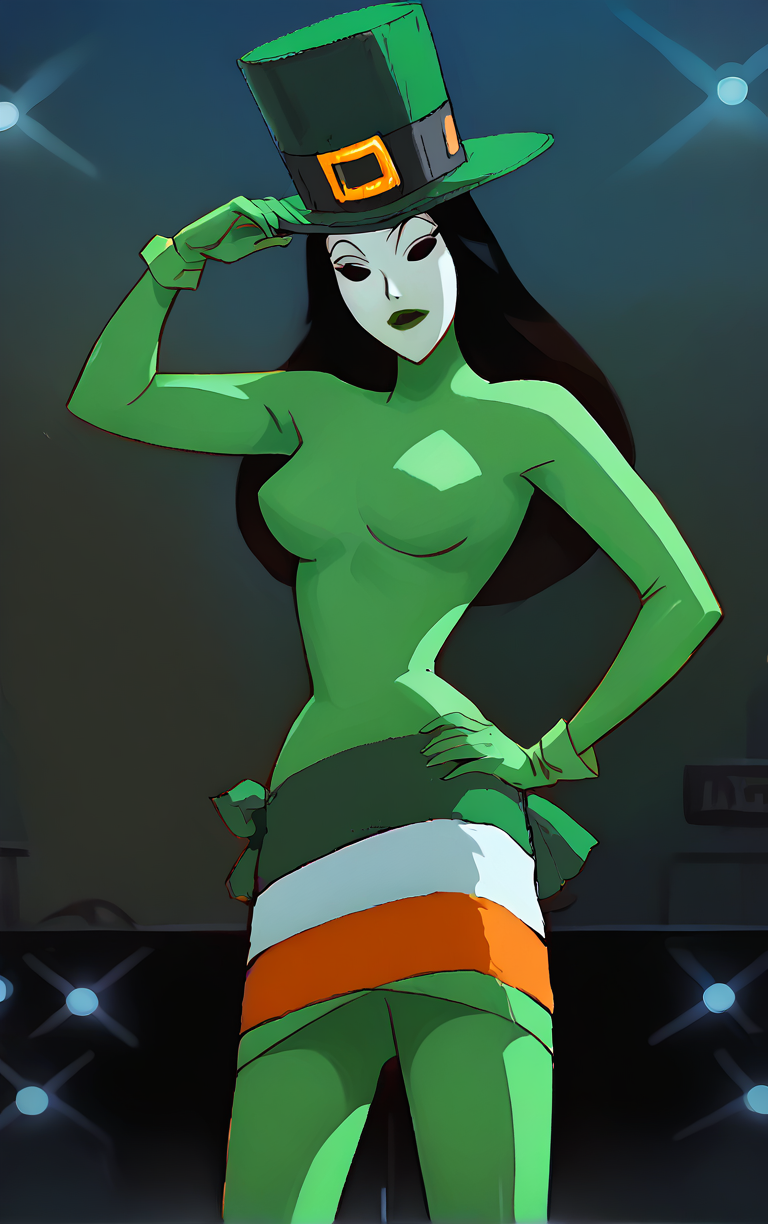 에피소드에서 그녀의 특징은 다양한 휴일을 주제로 한 무기를 사용하는 것입니다. 그녀는 무기를 패션 액세서리처럼 착용하다가 필요할 때 사용합니다. 일부 무기는 LoRA에 포함되어 있으며, 저는 7월 4일 독립기념일 아이템을 편집하여 성 패트릭의 날 전용 액세서리 세트도 새로 만들었고, 이 또한 포함했습니다.