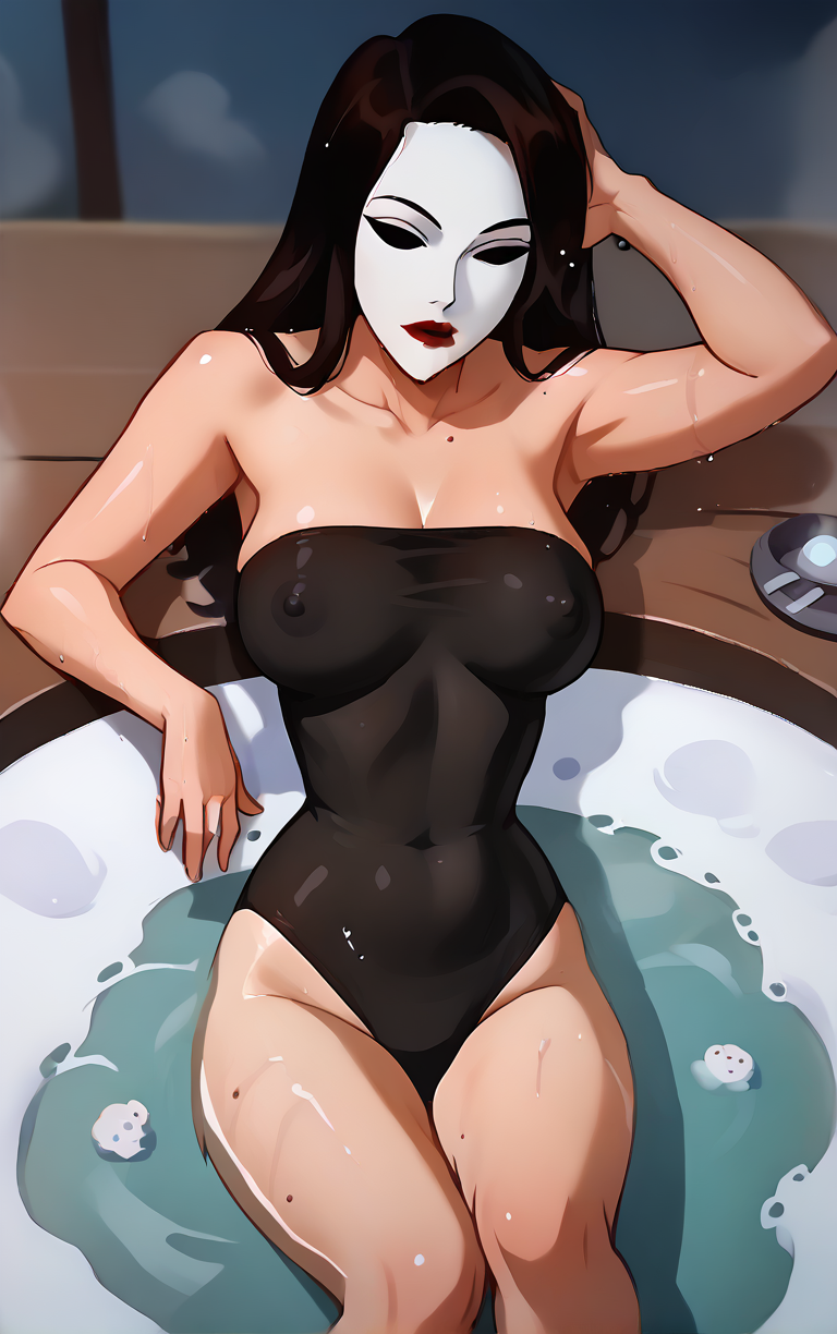 마스크 없이 그녀를 생성하고 싶다면, 프롬프트에서 "흰 마스크" 트리거를 생략하세요. 저는 일반적으로 "아름다운 여자"와 "메이크업"을 추가하여 마스크가 없음을 강조하지만, 사용하는 프롬프트와 체크포인트에 따라 불필요할 수 있습니다.
