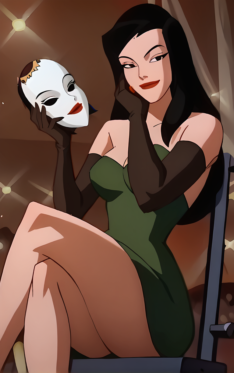 에피소드에서는 배트맨과 배트걸이 밤컴퓨터에서 패이지의 모델 시절 사진과 영상을 보는 장면이 나옵니다. 이러한 옷차림도 LoRA에 포함되어 있지만, 대부분의 옷(올리브 드레스 제외)은 단일 이미지로 학습되었기 때문에 결과는 다를 수 있습니다: